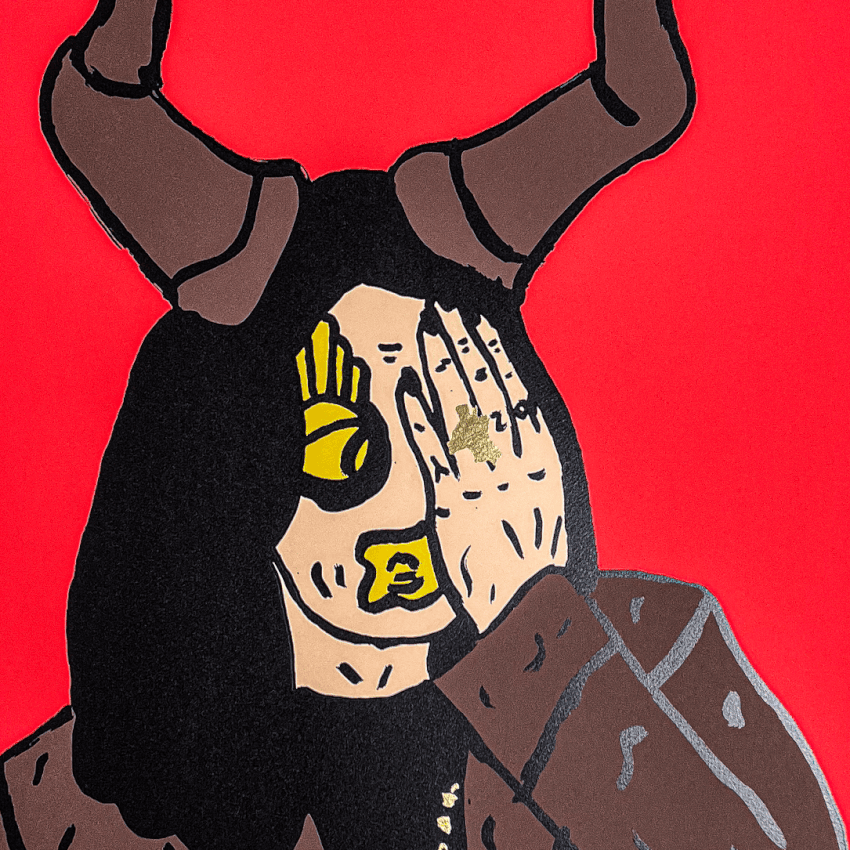 One of Mason Newman’s most culturally resonant works is his Prince of Darkness artwork, a striking portrait of Ozzy Osbourne reimagined with bull horns — a powerful symbol of Birmingham, the city that shaped them both. By fusing Ozzy’s legendary persona with the bull iconography synonymous with Birmingham’s industrial strength and cultural identity, Newman creates a layered homage to the city’s musical and creative legacy. The work bridges generations of rebellion, connecting the raw energy of Black Sabbath’s frontman with the contemporary visual language of British youth culture. Both irreverent and reverential, Prince of Darkness stands as a declaration of Birmingham pride, positioning Ozzy not only as a global rock icon but as a mythic figure rooted firmly in his hometown.