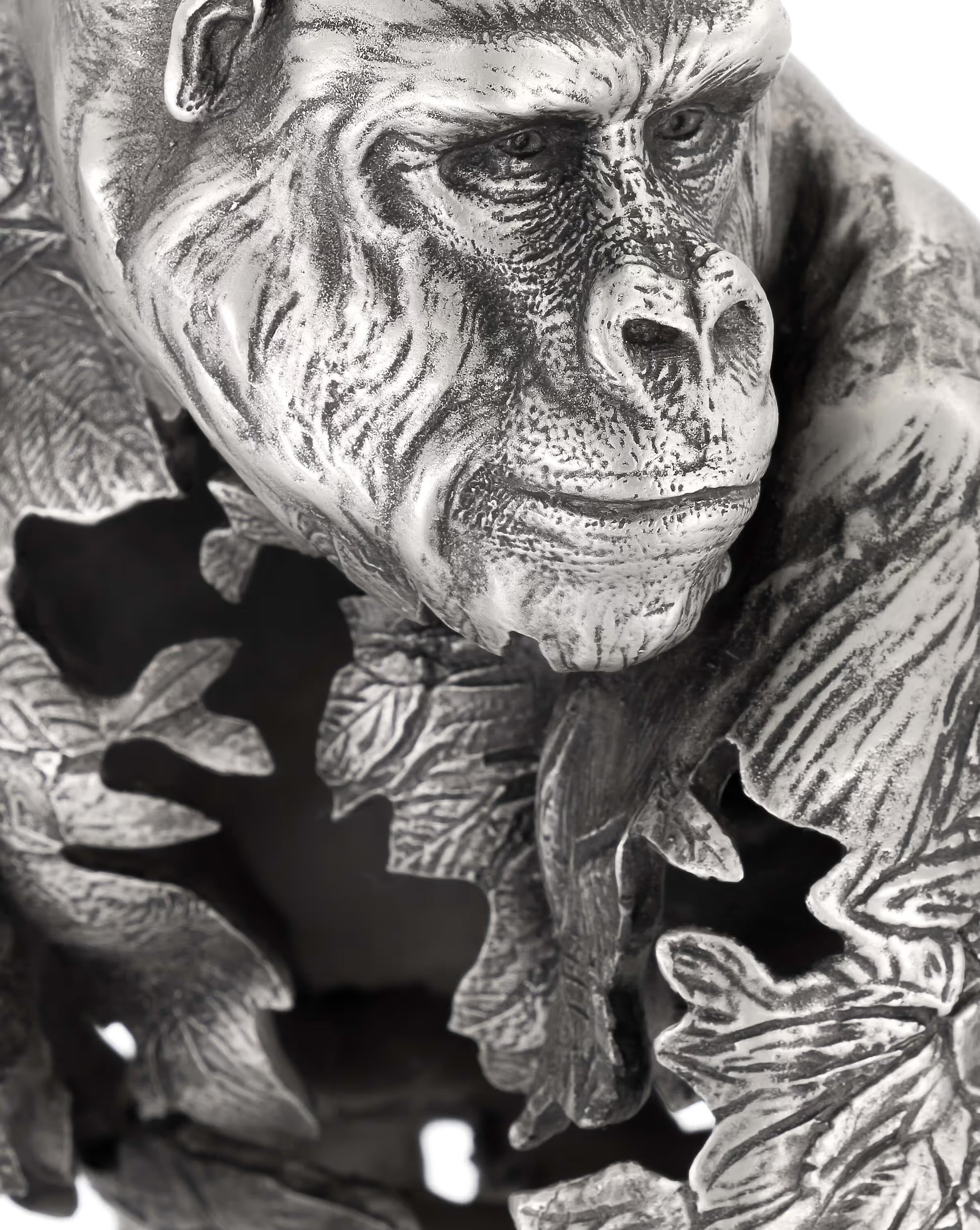 ‘Mountain King’ is a stainless steel sculpture measuring 14 x 12” and released as a limited edition of 195. This sensitive and thought-provoking work highlights the beauty, strength and intelligence of the gorilla and, by contrast, the fragility and plight of both the species and its natural habitat.